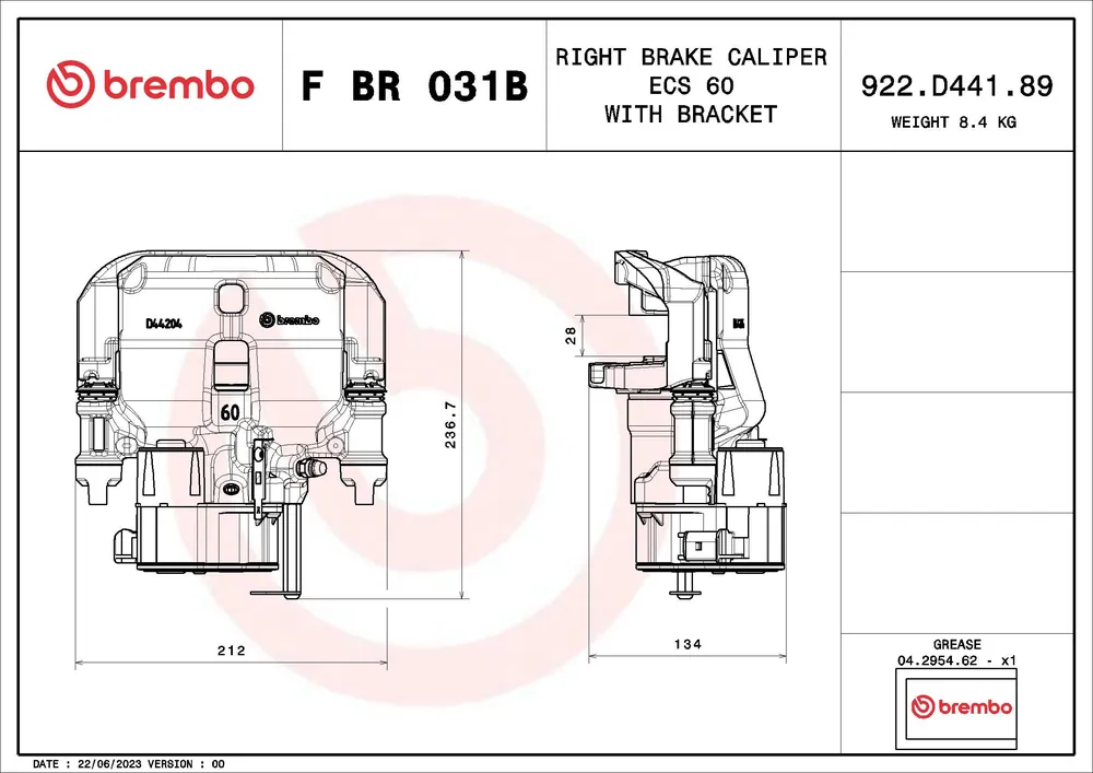 Diameter [mm]: 60 Remzadel uitvoering: Remzadel (1 zuigers) Materiaal: Grijs gietijzer